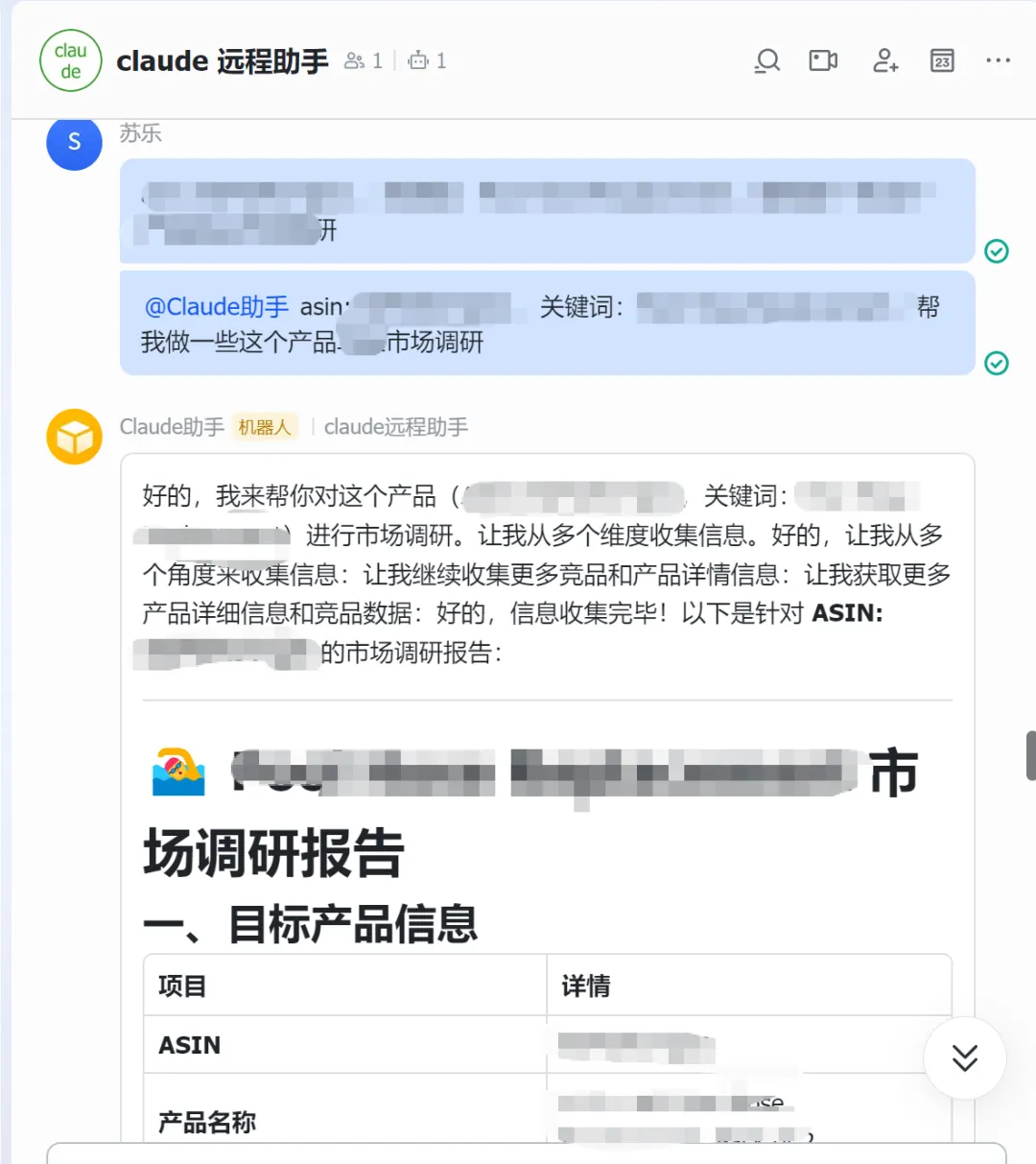 在飞书上丢一个产品关键词进去,三五分钟就能收到一份完整的选品调研报告。