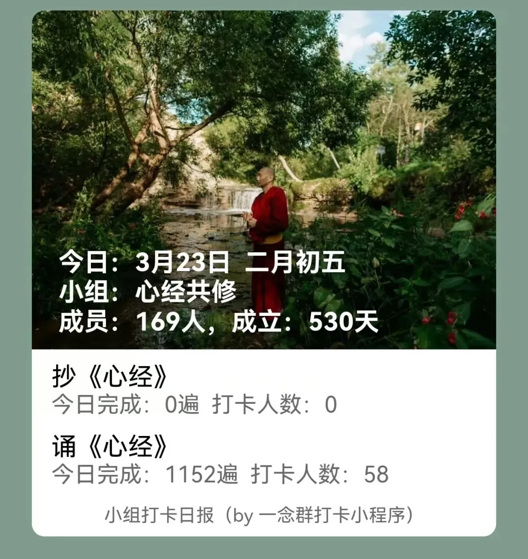 如您还没使用一念群打卡小程序,正好自己或者身边的朋友需要,欢迎点击下面卡片使用,也可以转发给您觉得需要的同修。