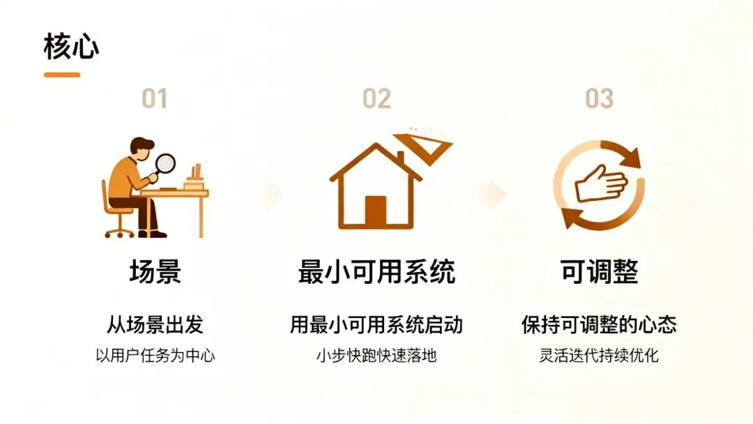 2. 用“最小可用系统”启动,而不是追求“一步到位”
