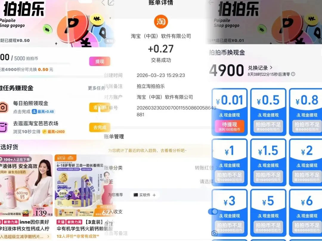 小提示:每天可以完成一次拍照任务,直接获得现金红包,自动到账支付宝;拍拍币任务每天都可以完成,攒够一定数量可以直接兑换现金红包,不用复杂操作,带娃、上班间隙就能完成。