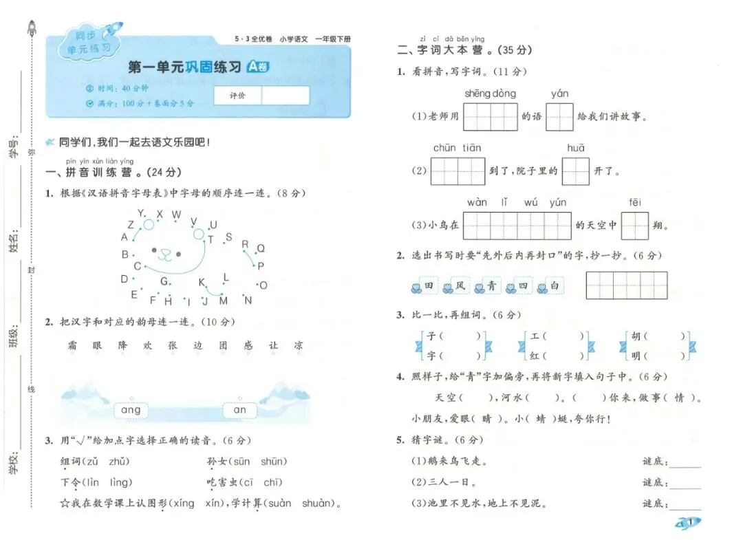 26春一年级下语文全优卷电子版免费领取