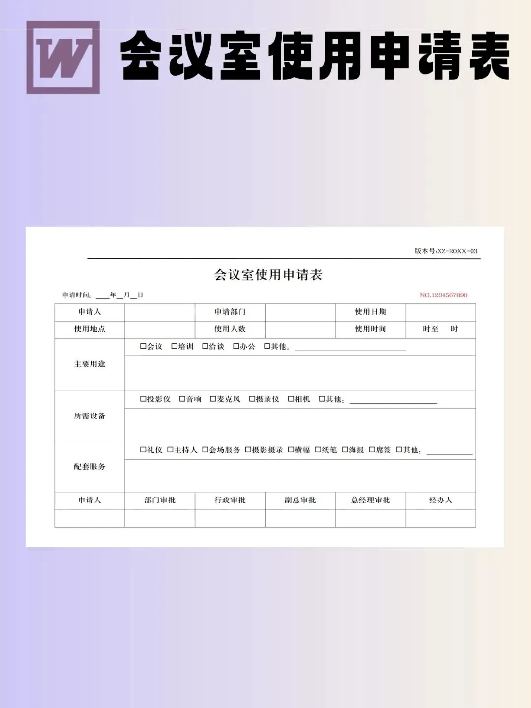 会议室使用申请表模板