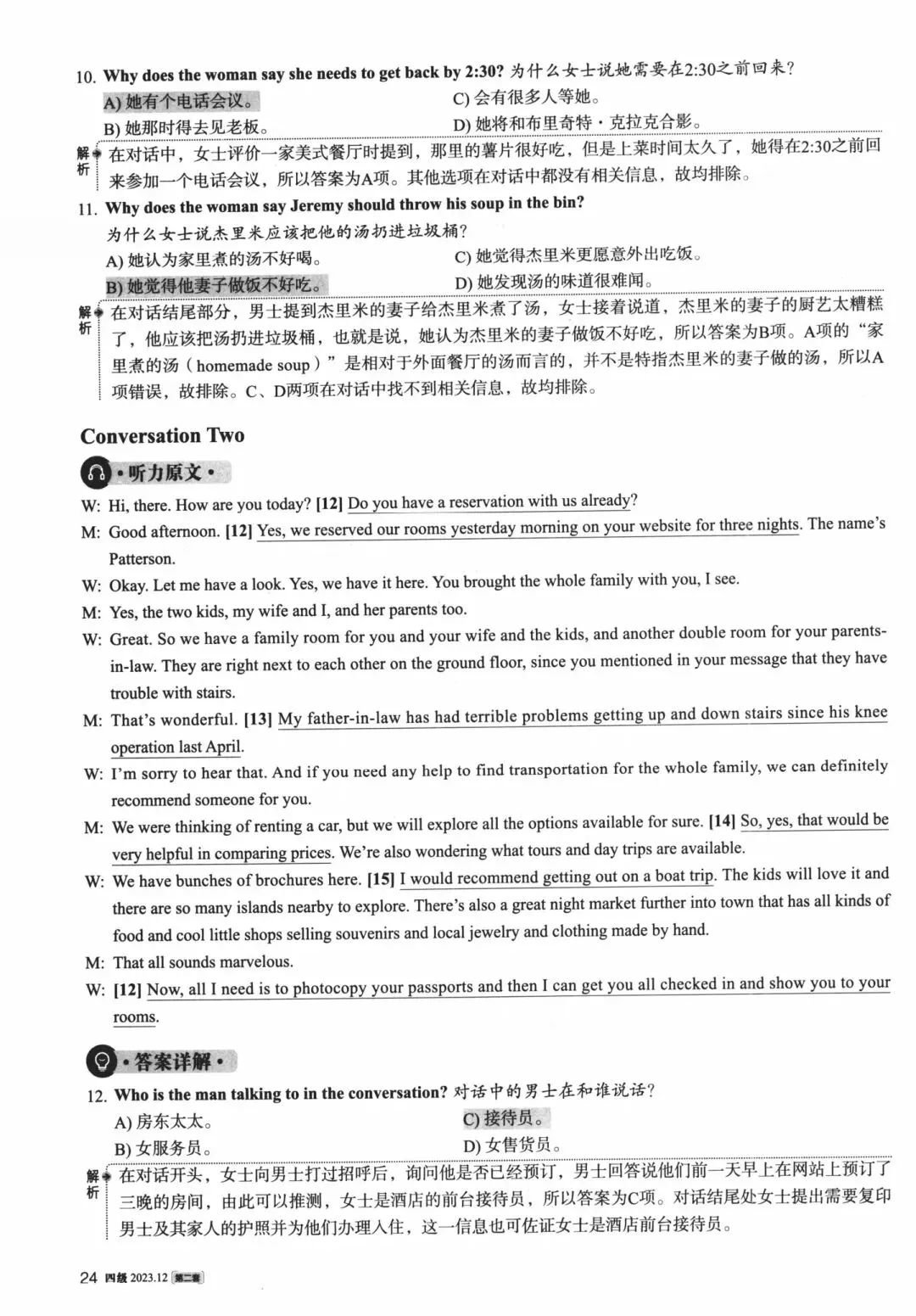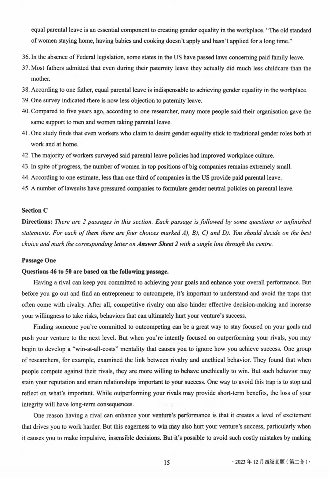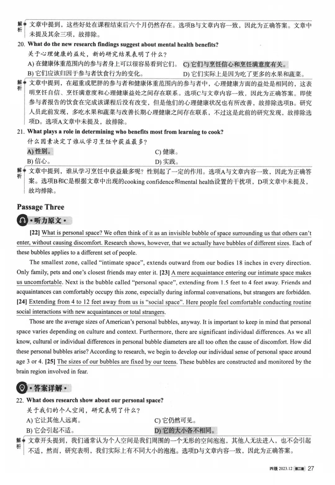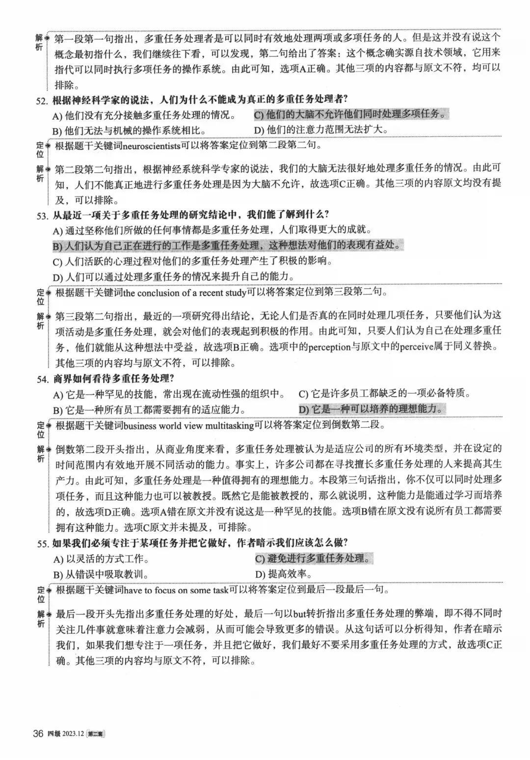 2023年12月第二套(后附电子版) 听力: 真题: 答案及解析: 电子版自取: 通过百度网盘分享的文件:2023.12四… 链接:https://pan.baidu.com/s/1dG1YK9gS_O7LZUMmyvQXlw?pwd=5zqc 复制这段内容打开「百度网盘APP 即可获取」 通过百度网盘分享的文件:2023.12英…链接:https://pan.baidu.com/s/1DauJ5vgZvymFb-ftmIbwkA?pwd=7154 复制这段内容打 开「百度网盘APP 即可获取」