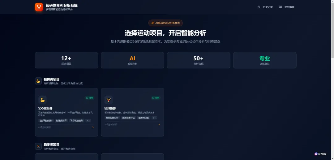 AI大模型是当下最火热的话题,如何将话题转化为行动,智研体育结合当下AI大模型工具,尝试性制作了“智研体育AI分析系统”辅助体育课堂教学与课余训练。涵盖投掷类、跑步类、跳跃类、球类、跳绳类五大项十二小项的智能分析,只需要拍摄视频上传,即可获得专业的智能分析。初期版本还有很多不足,欢迎大家多多尝试。