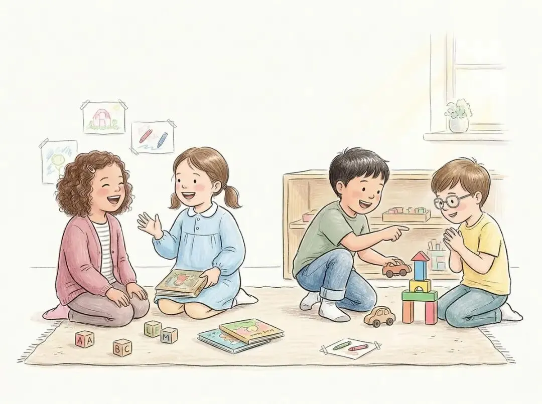 语言本身就是一种社交工具,在真实的互动场景中,娃不只是跟着读、跟着说,而是真的在“用”语言。老师能观察到娃的情绪变化、小朋友之间的互动反应,这些微妙的社交信号,AI根本捕捉不到。