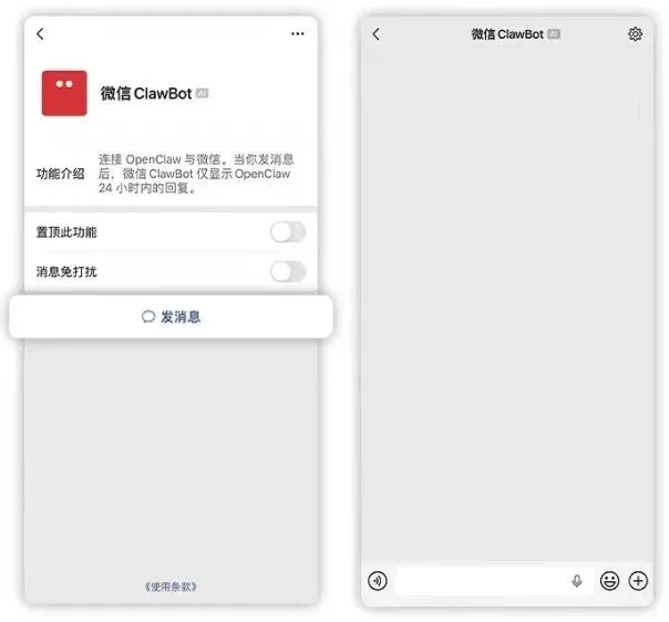 在隐私安全方面,微信官方明确,ClawBot严格遵循本地优先、数据自持、隐私可控的设计原则,仅获取必要的消息收发权限,不读取聊天记录、不获取通讯录、不上传文件内容,所有指令执行与数据处理均在用户授权范围内完成,且不收取任何费用、不强制上传数据,全程保障用户隐私安全。此外,该插件仅支持一对一私聊模式,禁止被拉入群组,其他用户无法添加或查看,进一步杜绝信息泄露风险。
