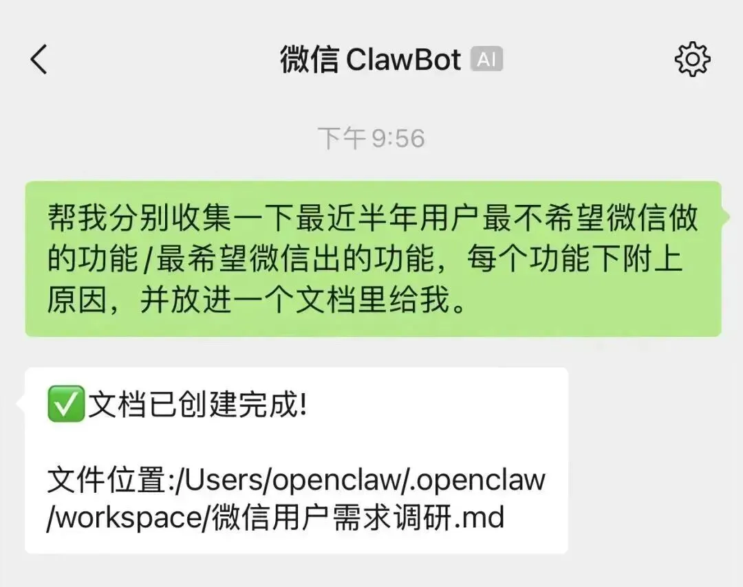 在微信内向「龙虾」发送指令、在微信内接收「龙虾」的回复、用于学习、工作、创作等场景
