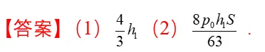 【考查知识点】 气体实验定律与热力学定律综合。涉及等压变化、等容变化、活塞受力分析、热力学第一定律。