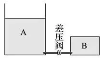当环境温度T1=300 K时,A内气体体积VA1=4.0×102 m3,B内气体压强pB1等于大气压强p0,已知活塞的横截面积S=0.10 m2,Δp=0.11p0,p0=1.0×105 Pa,重力加速度大小取g=10 m/s2,A、B内的气体可视为理想气体,忽略活塞与汽缸间的摩擦,差压阀与连接管内的气体体积不计。