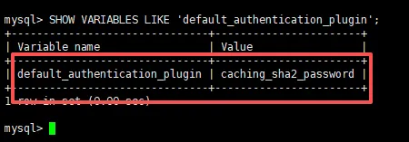 -- 查看全局密码插件配置SHOW VARIABLES LIKE 'default_authentication_plugin';