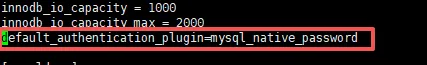 [mysqld]default_authentication_plugin = mysql_native_password