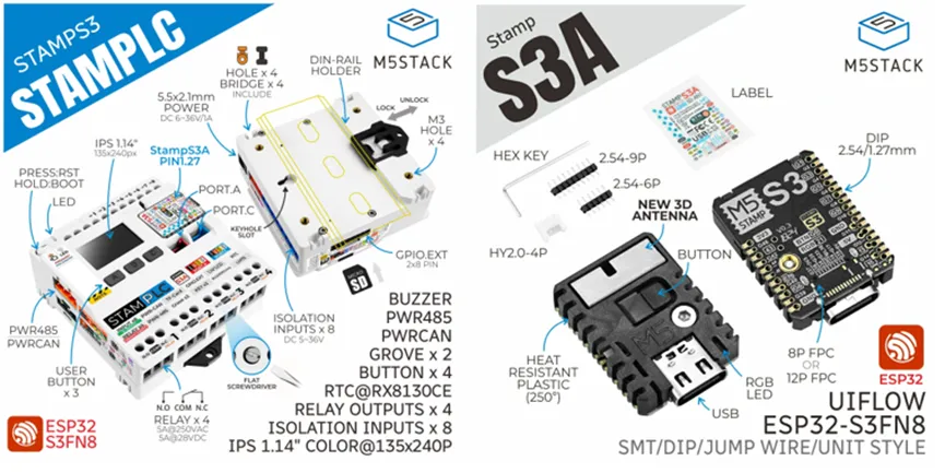 双芯融合架构:Stamp-S3A 控制模组 + PLC 双重核心,搭载 ESP32-S3 芯片,兼具工业级处理能力与高效有线 / 无线连接,运算稳定不卡顿;
