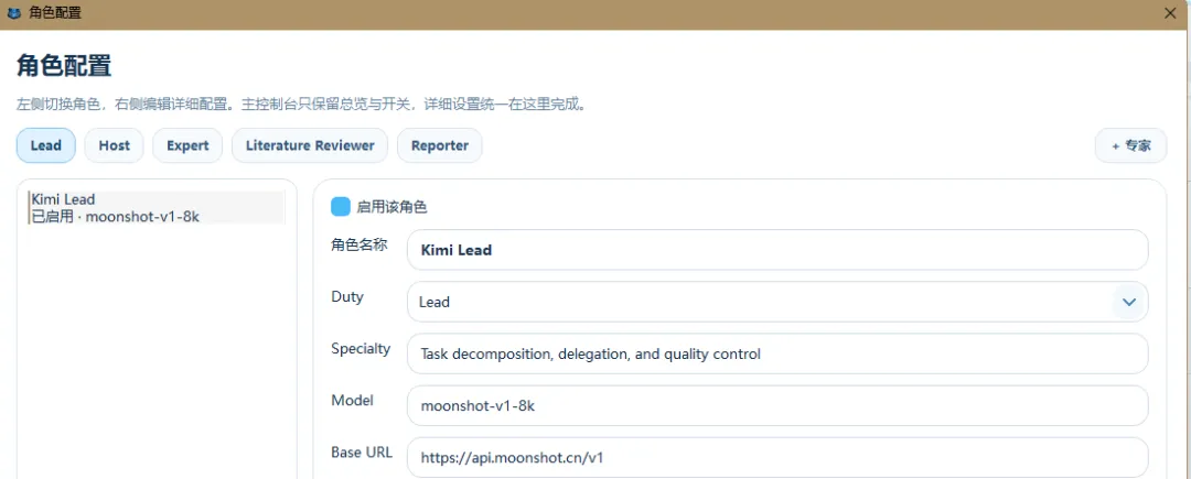 我们使用kimi、豆包、通义千问、deepseek和豆包五种国产模型,设置三个专家角色。为了让大家更直观地理解这几个 AI 是如何有条不紊地推进研究的,我们来看一个具体的实操案例: