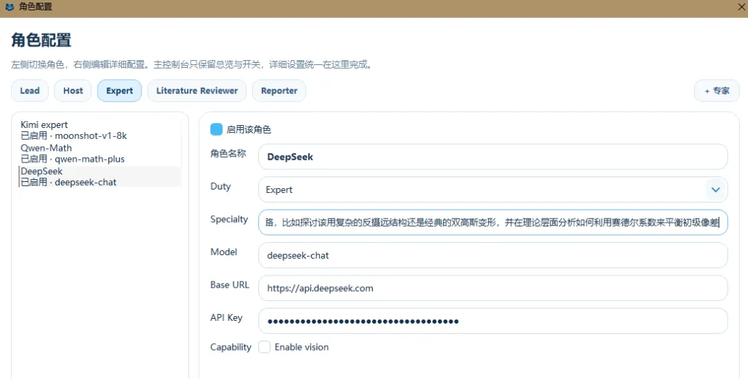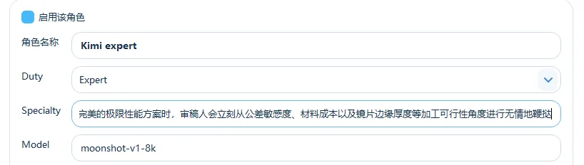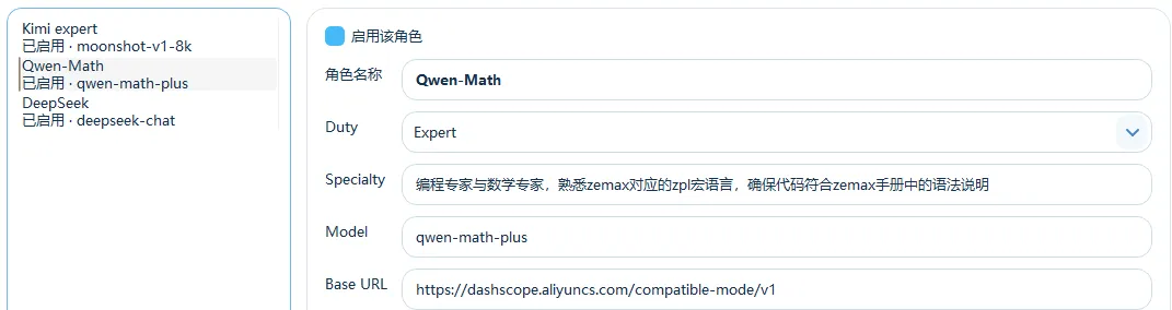 通过API接口配置,我们可以同时引入多个大模型,并且给这些模型设置不同的角色。