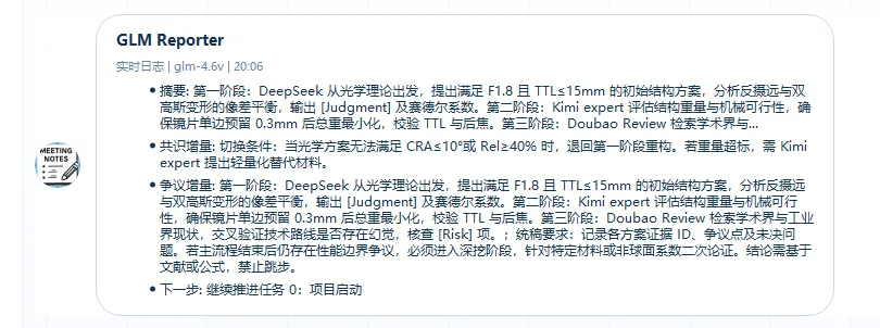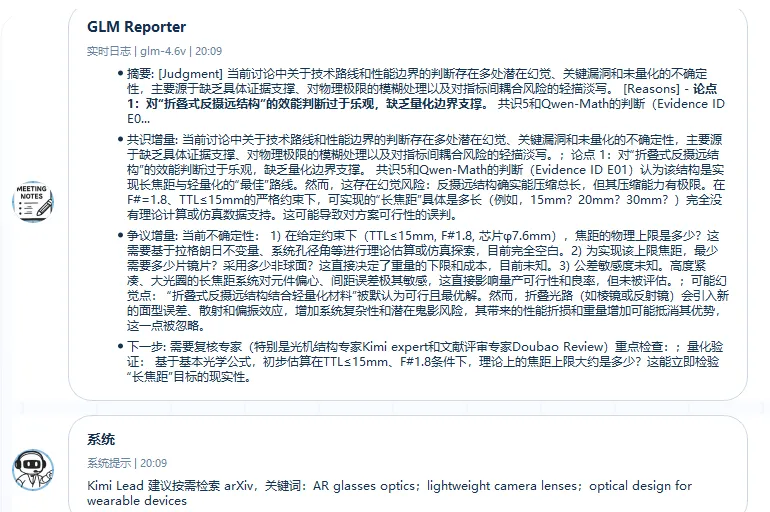 它会敏锐地提取出“焦距尽量长”与“光学总长极短(轻量化)”这一对核心物理矛盾,并指派文献综述员去检索轻薄长焦方案。目前的版本中,AI可以自动检索arXiv,后续版本我们也会升级自主学习能力。