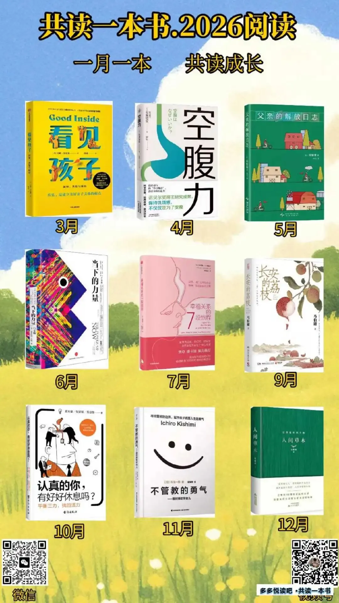 2026 年,我们经过严格甄选,再次为大家带来年度 9 本共读书单,内容涵盖亲子、亲情、成长、心理、健康等多个领域。新的一年,让我们以书为伴,共读共成长。