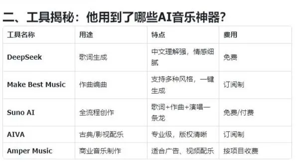 二、工具揭秘:他用到了哪些AI音乐神器?