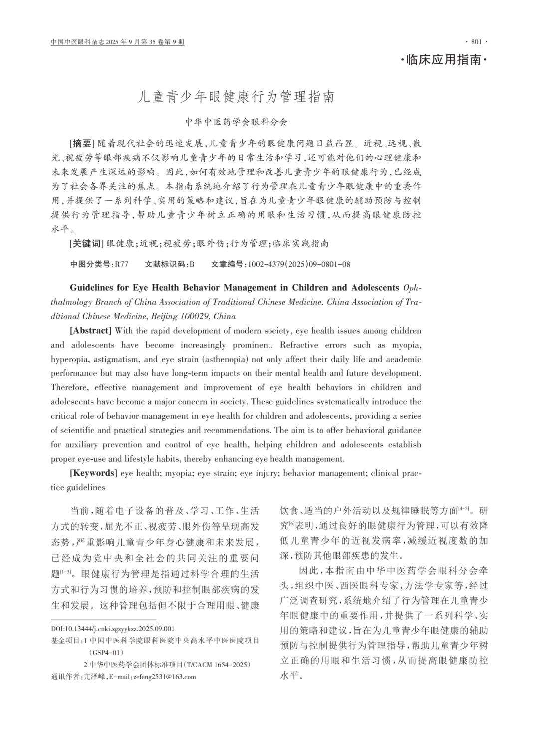 【关键词】眼健康;近视;视疲劳;眼外伤;行为管理;临床实践指南