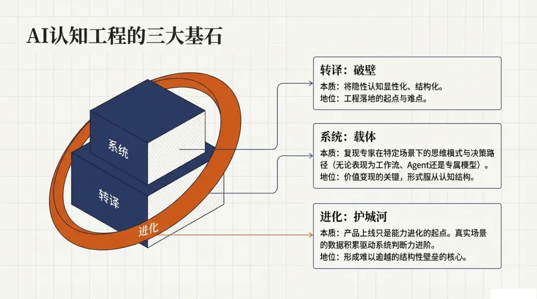 这一定义包含三个核心关键词,共同构成AI认知工程的底层逻辑:转译、系统、进化。