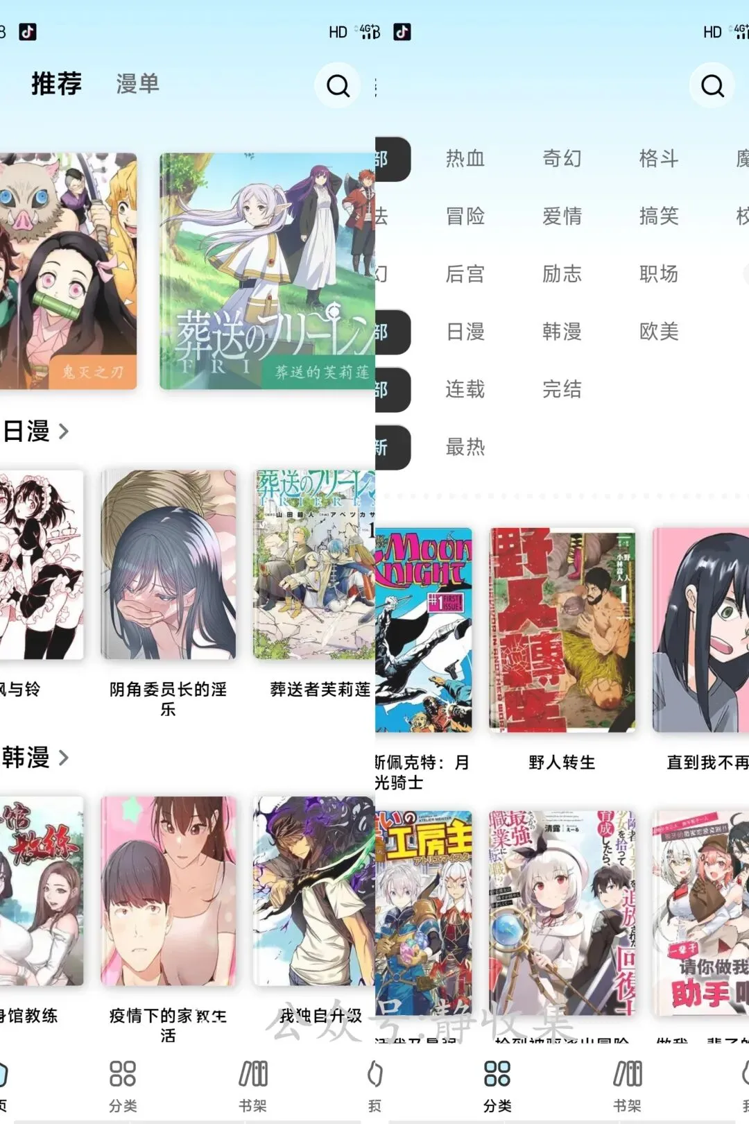 免费看漫画神器,彻底去广告 大家之前看漫画是不是总有广告,内容受限,不流畅还卡顿 今天给大家推荐一款免费看漫画神器 懒漫漫画|安卓免费漫画 APP 极简界面|纯净无广|资源超全主打懒人式追漫,打开就能看 软件简介 完全免费 :无会员、无付费章节、无内购,全站免费看 纯净无广 :无开屏、无弹窗、无阅读插页广告,沉浸式阅读 资源超全 :国漫、日漫、韩漫、美漫全覆盖,热门连载 + 海量完结作品 界面简洁 有首页推荐 还有分类 还有我的书架 有目录 可以设置阅读模式 背景颜色 获取方式:关注公众号回复2026321