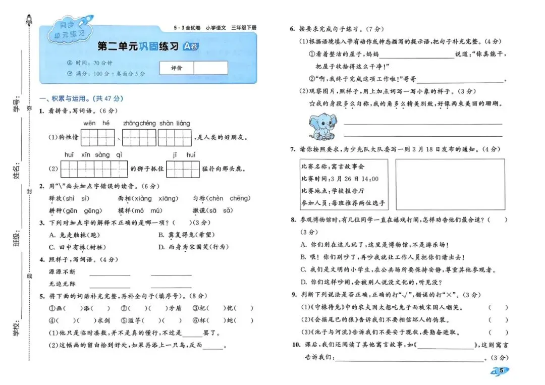 紧扣小学中段语文学习重点,贴合新课标与校内考情,以夯实基础、能力过渡、分层提分为核心,是三年级同步检测、期中期末备考的优质教辅。