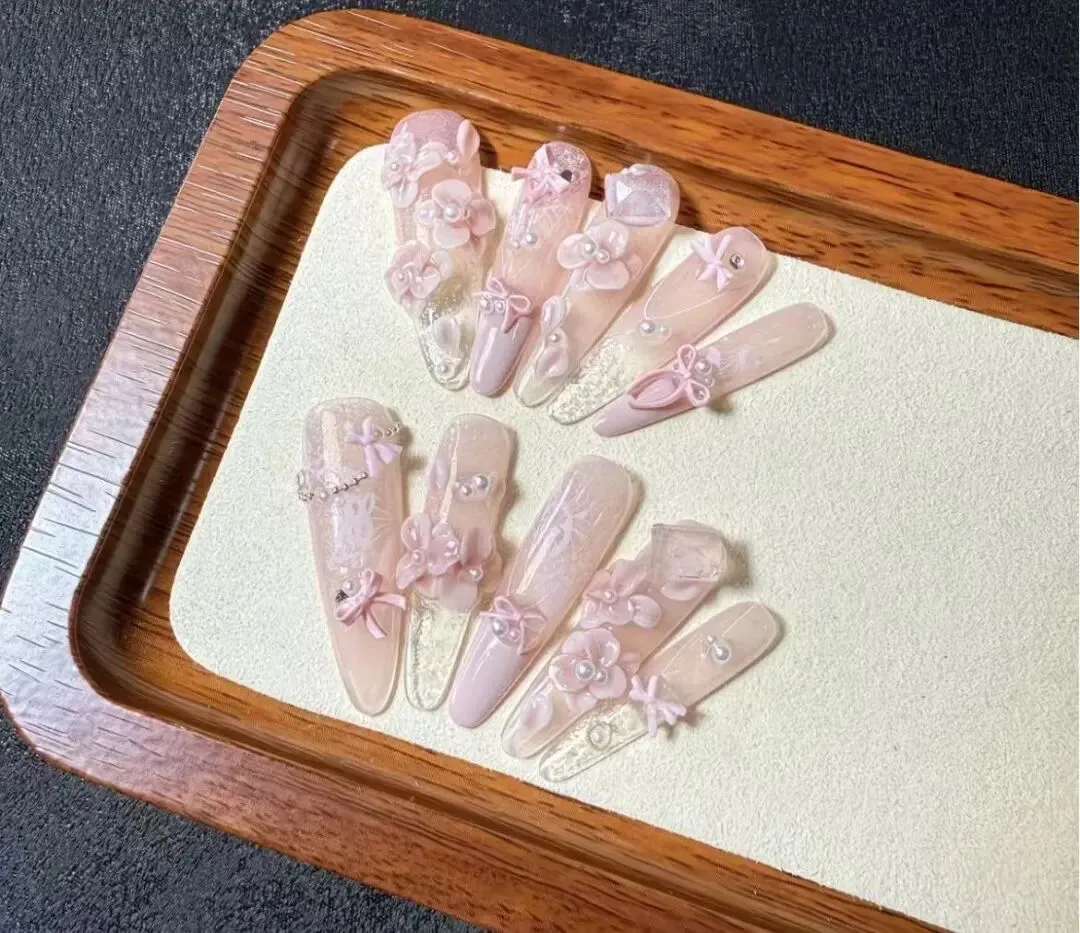 🌸不想做长美甲又想有氛围感的姐妹直接冲,戴上手就是 “温柔本身”,连拍照都自带柔光滤镜✨搭配小裙子、针织衫都超绝,春天的氛围感直接拉满!