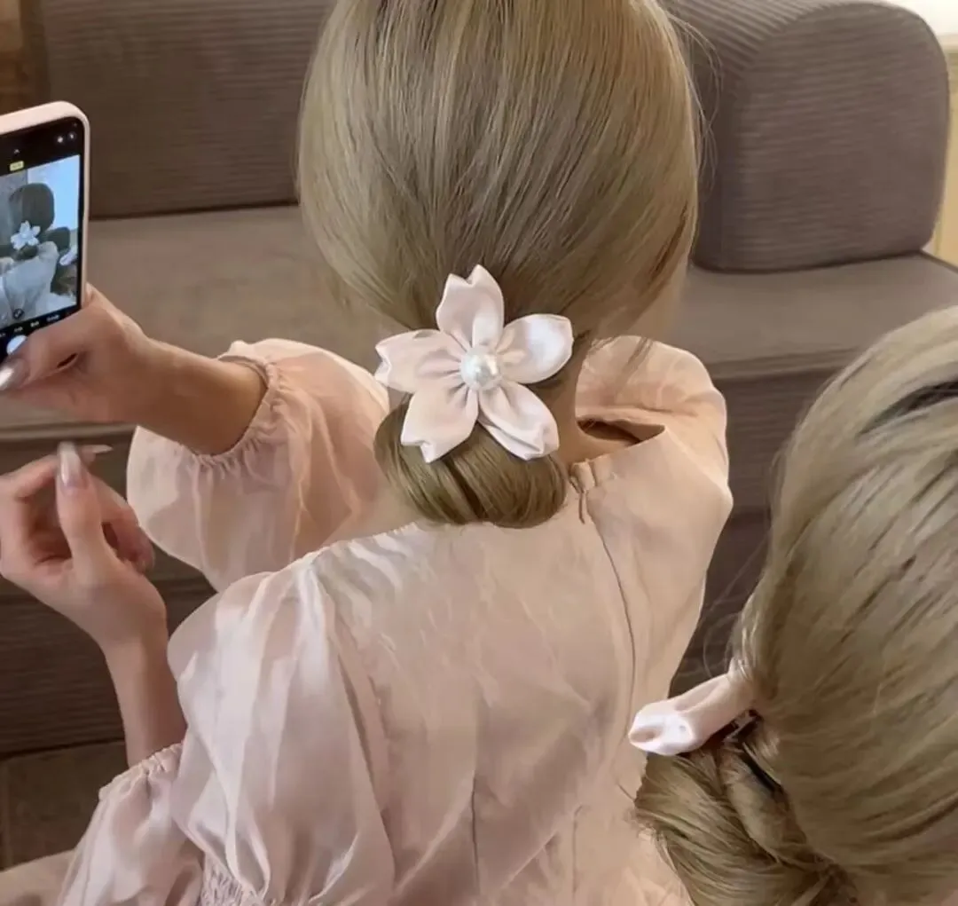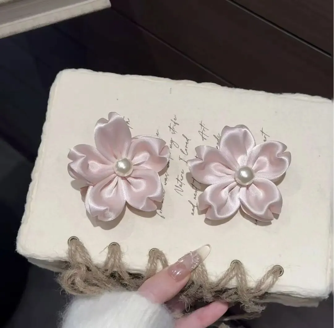 🎀谁懂啊!这朵樱花发夹直接把春天别在头发上了缎面的花瓣软乎乎的,中间那颗珍珠还带着柔光,扎个低马尾、半扎发,往头上一夹,瞬间就有韩剧女主那味儿了!