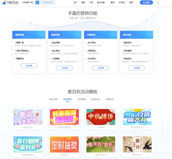 突出亮点:不需要代码基础,拖曳式操作简单便捷,匹配一站式服务,抽奖活动和后台运营结合,节约制作成本。