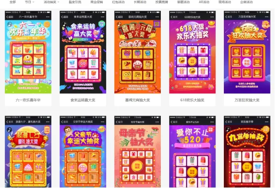 突出亮点:玩法形式丰富多样,涵盖互动游戏、答题竞赛、基础抽奖等多种类型,让参与者在趣味娱乐活动中了解品牌概念、企业产品等,轻松解决传播吸粉、引流获客等需求,达到企业营销、产品推广的目的。