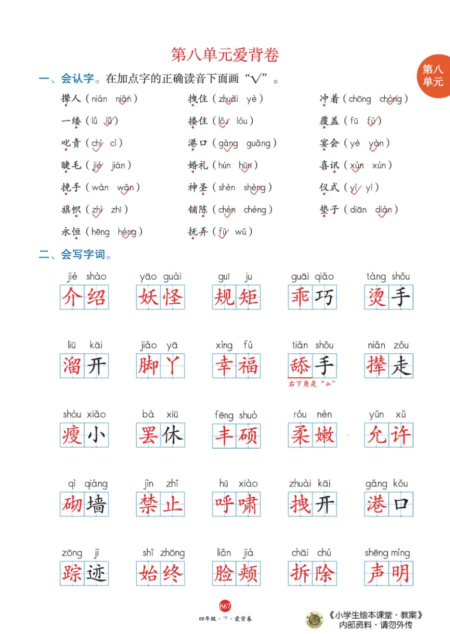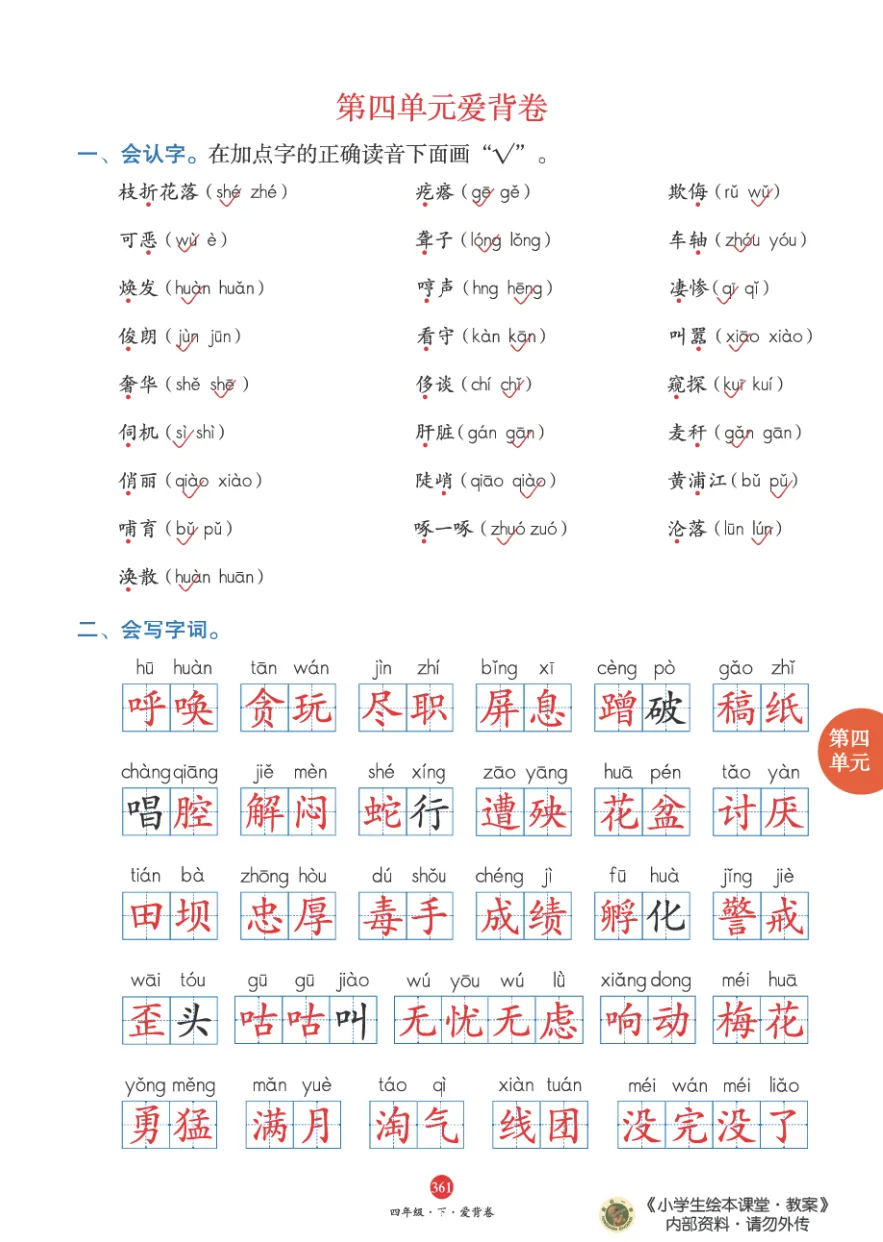 统编语文四(下)全册必背知识点(免费下载) 领取电子版请拉到文末领取电子版请拉到文末 梅老师给大家整理了统编版四年级下册单元知识盘点(高清彩印版),有需要的家长,可以下载打印给孩子复习,非常实用!【建议老师转发到班级群】 温馨提示:保存图片打印或拉至文末下载电子档 第一单元 第二单元 第三单元 第四单元 第五单元 第六单元 第七单元 第八单元 领取电子版资料方式 长按识别二维码 即可领取电子版打印