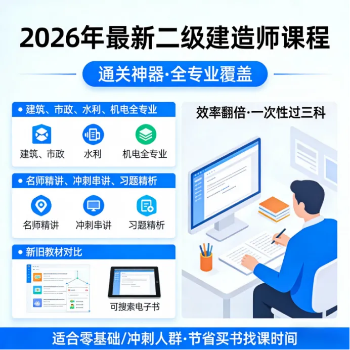 这套资料包直接拿捏所有二建考生的需求,建筑、市政、水利、机电等热门专业全覆盖,不管你是考本专业还是跨专业备考,不用再东拼西凑找资料,一套就能搞定全科备考,从基础到冲刺,全程不缺席!