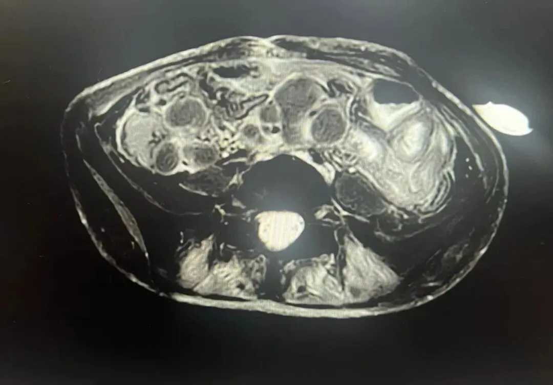 接诊时,小月的情况已十分危急:原本柔软的腹部硬如木板,血压跌至危险值,还伴随重度贫血、严重感染等多种并发症,随时有生命危险。CT检查显示腹部存在气腹(提示肠破裂穿孔),多学科团队紧急讨论后,决定立即为其实施腹腔镜探查手术。