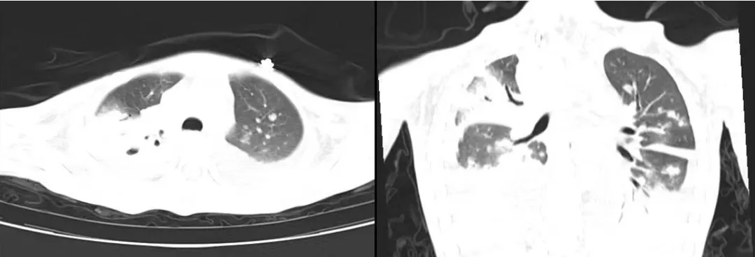 肺部多发斑块影、累及多肺叶伴胸腔积液、肺空洞