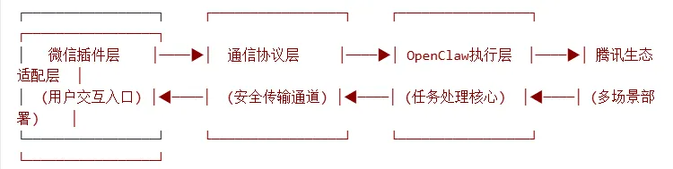 架构设计亮点:通过协议层与适配层的解耦设计,使 OpenClaw 核心能力可跨微信生态复用,同时四层架构的分层隔离确保单一环节故障不会影响整体系统稳定性。