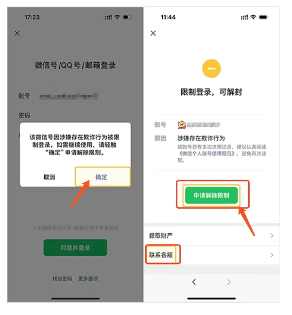 永久封禁(成功率10%-30%)• 特征:提示「账号存在严重违规行为」或「永久限制登录」