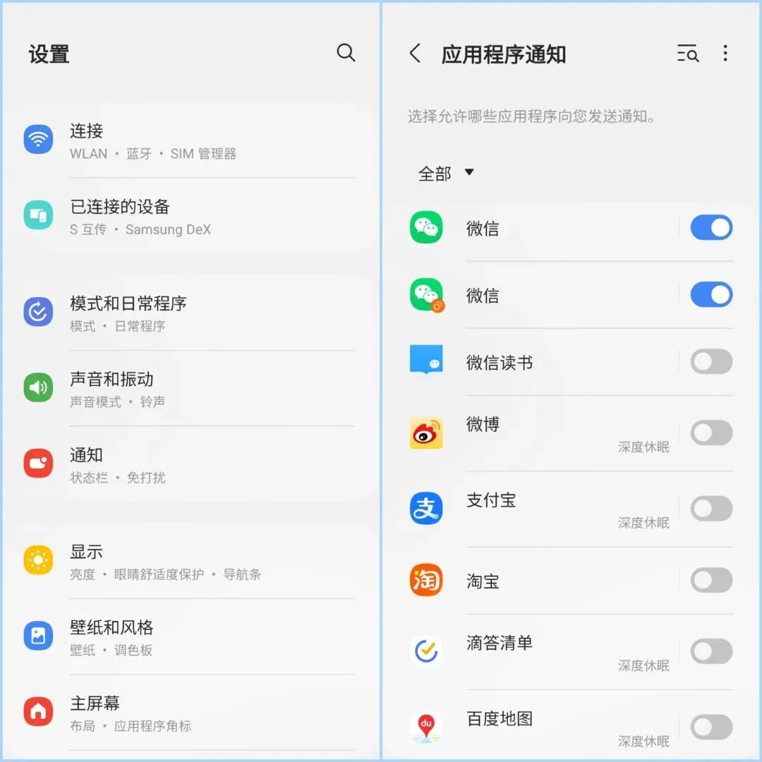 我自己是只保留了微信、短信、电话的通知,其余一律关掉。