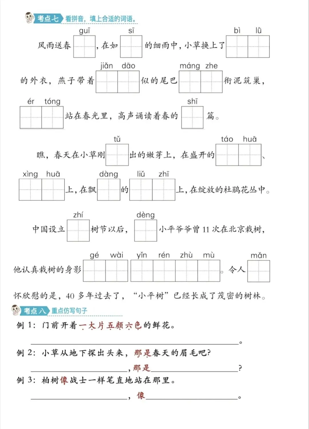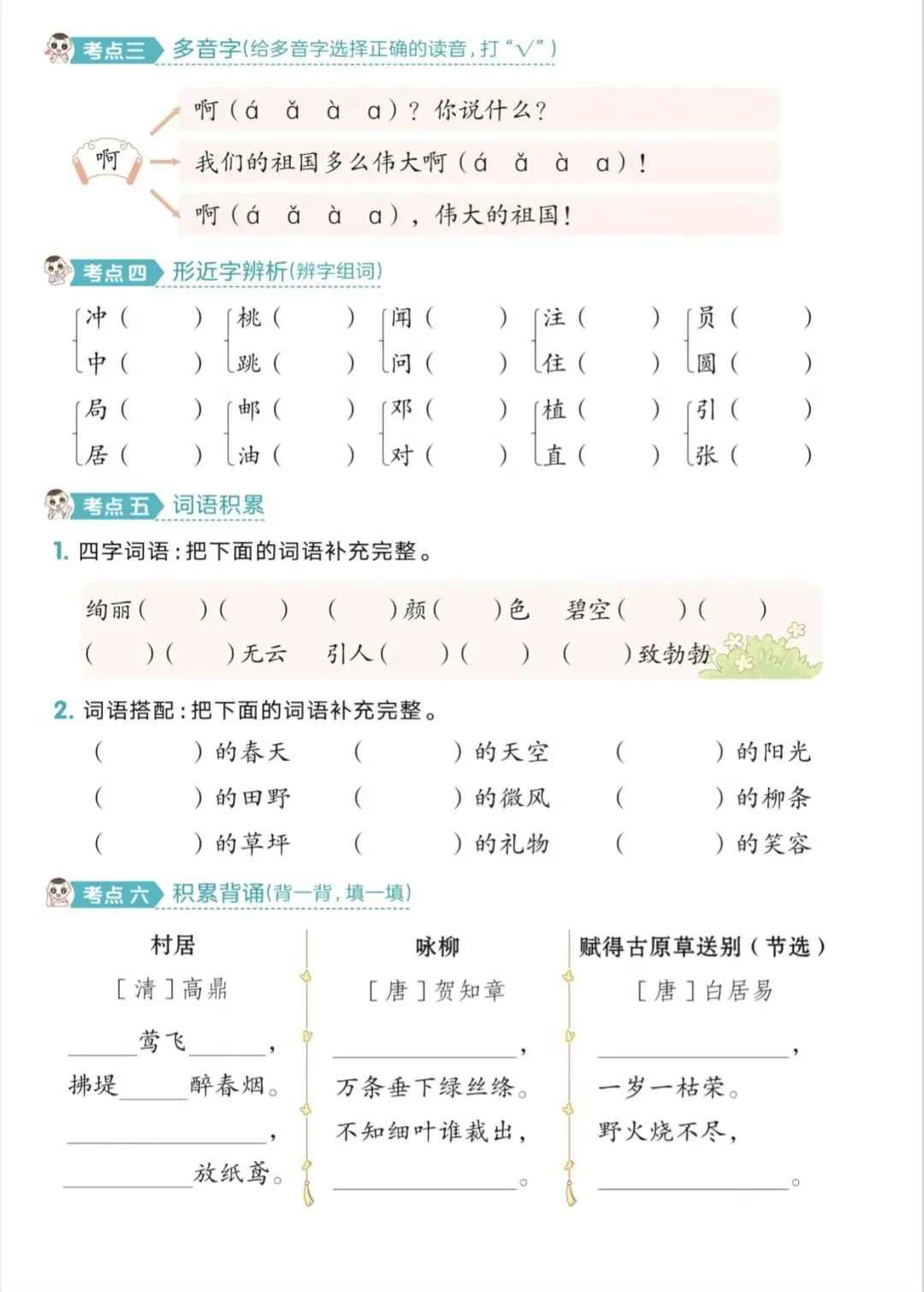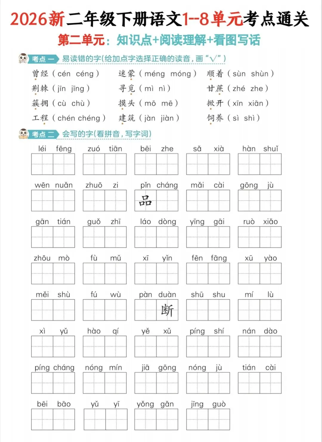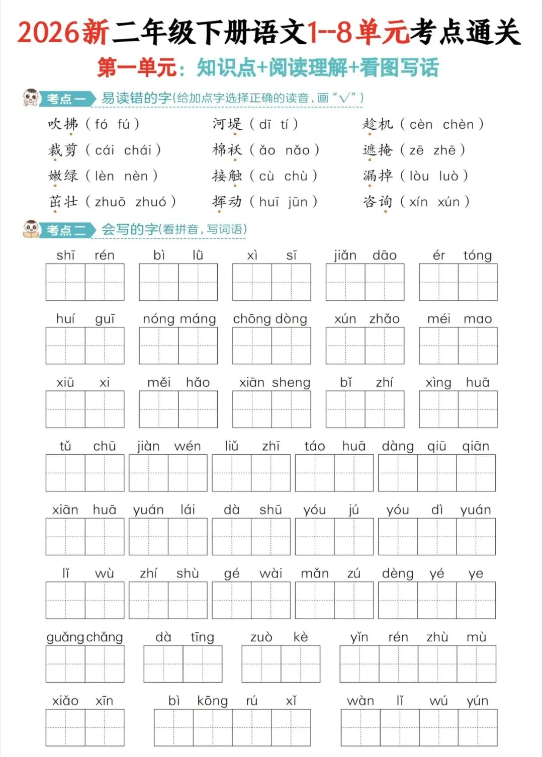 二年级下册语文1-8单元考点过关练|可打印