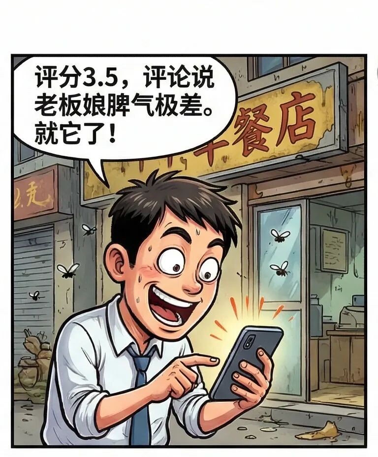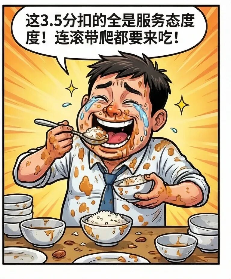 搞笑漫画(206)|评分4.8的刺客,不如3.5分的救赎 【剧场时刻】 我:老板娘,这盘子边上怎么有个缺口? 老板娘:嫌缺口大?那你去吃4.8分那个拿显微镜吃饭的店啊! 我:不是,我是说…能多给我盛点米饭吗? 老板娘:锅在后面,自己盛!别挡着后面排队的人! 【灵魂拷问】 你更愿意去哪种餐厅吃饭? A. 评分4.8,环境优雅,但吃不饱 B. 评分3.5,老板脾气差,但量大管饱 C. 评分4.0,中规中矩的连锁店 D. 只要不排队,吃什么都行 #3.5分饭店 #量大管饱#反向服务#美食探店#搞笑漫画