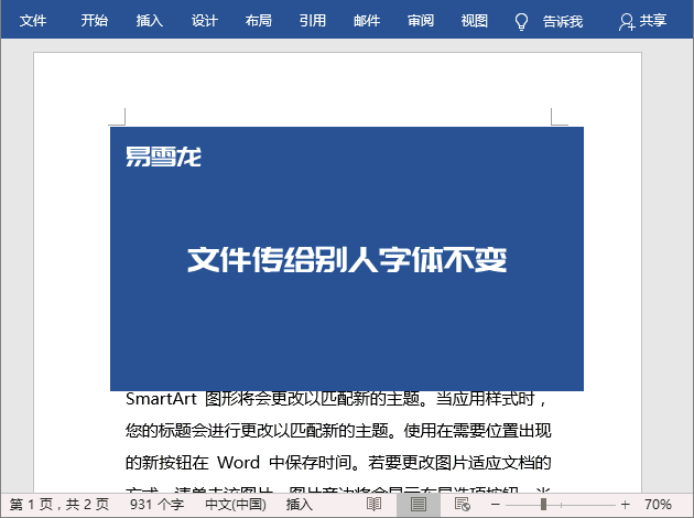 文件传给别人,字体不会改变