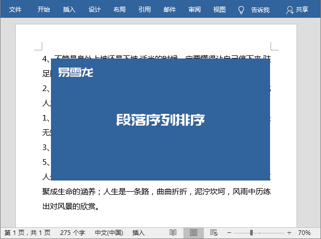 升序、降序排列,我们经常会在Excel中使用。在Word中其实也可以对文章段落进行升序、降序排列。