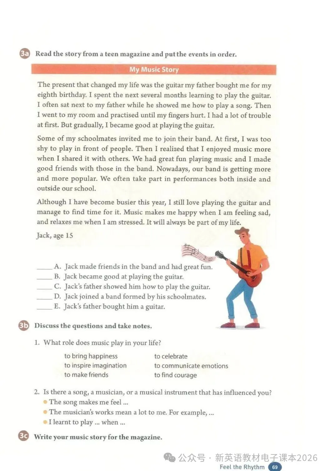 本套教科书各单元以主题为引领,以问题为线索,以活动为途径,关联现实生活,体现时代特征,包含丰富的文化内容。学习这套教科书可以帮助你们发展语言能力,培育文化意识,提升思维品质,提高学习能力,树立国际视野,涵养家国情怀,坚定文化自信,形成正确的世界观、人生观和价值观。