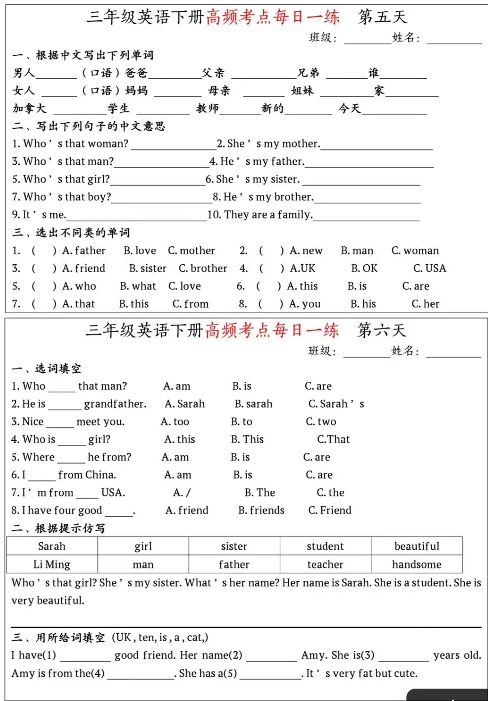 文末可下载:这份三年级英语下册高频考点每日一练,紧扣核心词汇与句型,题型丰富实用,能帮孩子夯实基础、巩固新知,是每日高效练手的优质资料。