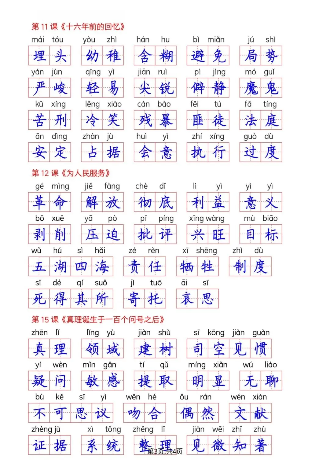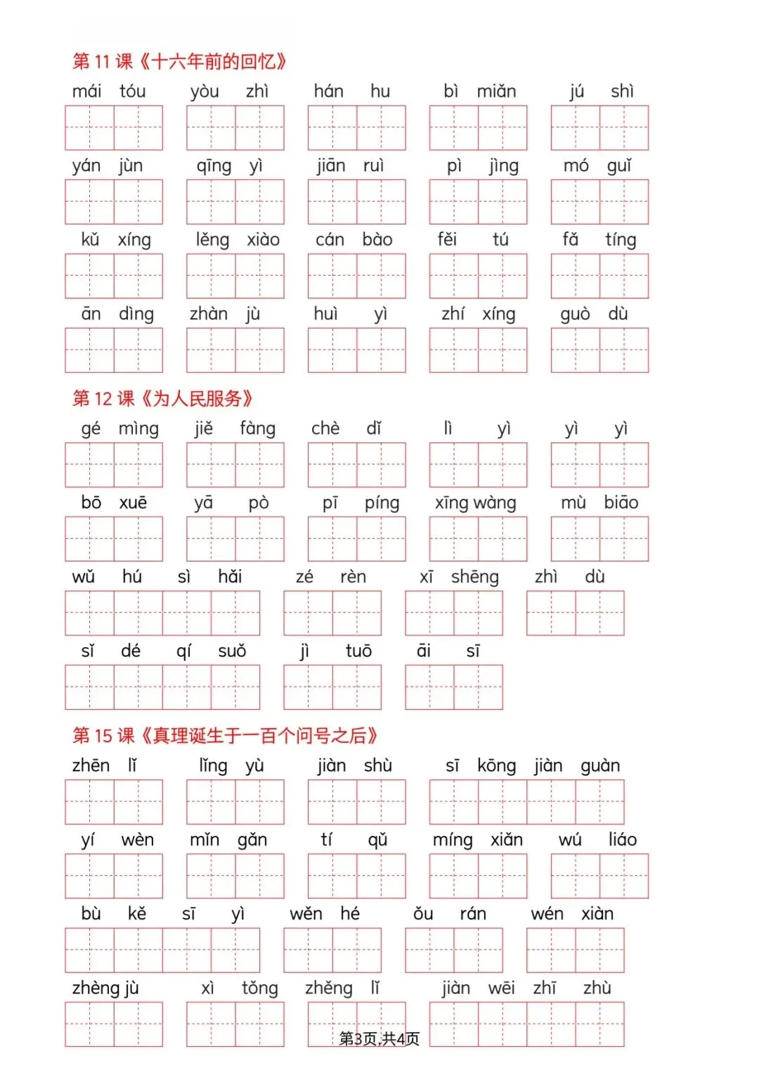 可下载丨26春六年级下册语文看拼音写词语–词语表,电子版可打印
