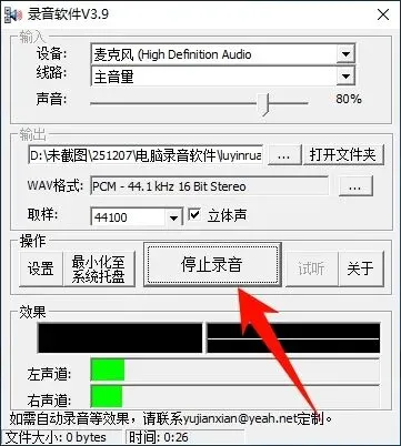 这是一款电脑声音录制软件,无需安装,双击打开即可使用,非常方便。
