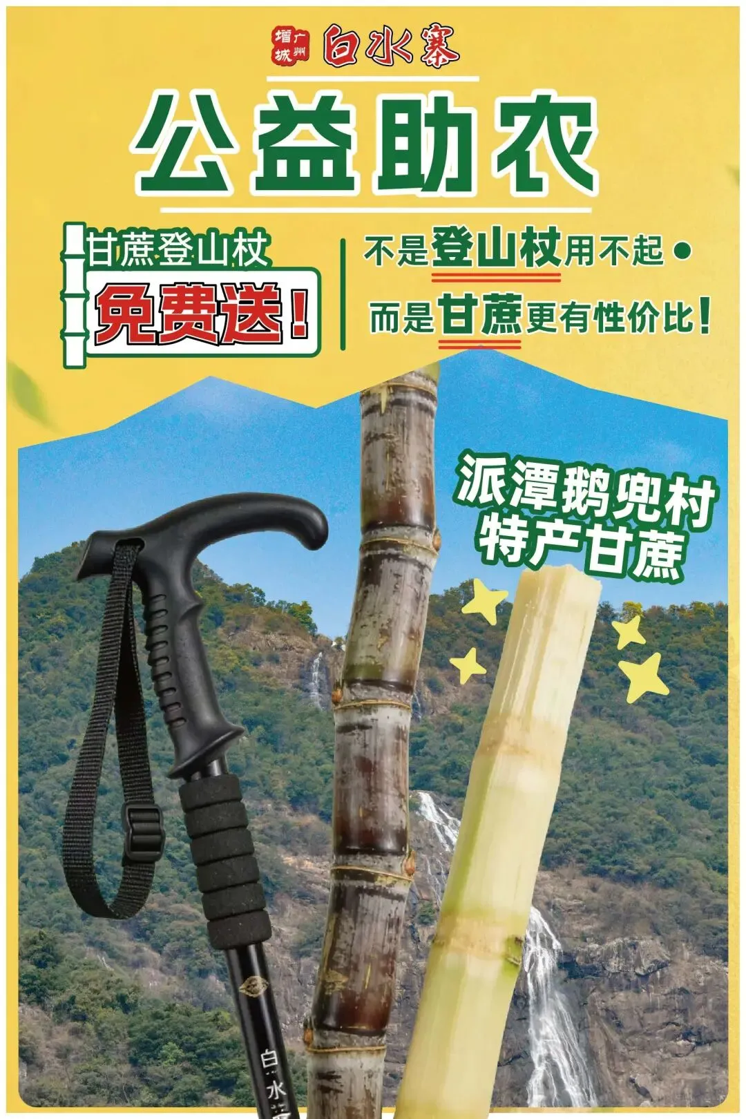 甘蔗变身“登山神器”,白水寨景区2天助销5000根甘蔗