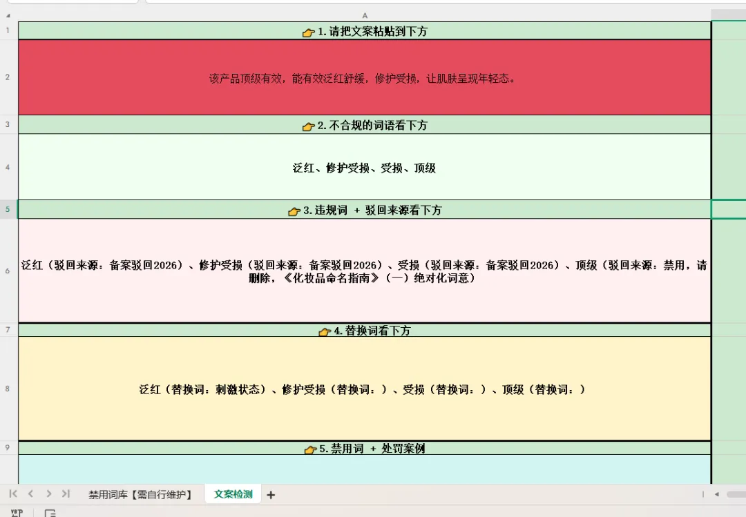化妆品禁用词检测表格工具|9.9 元解锁高效合规,新手立马上手!