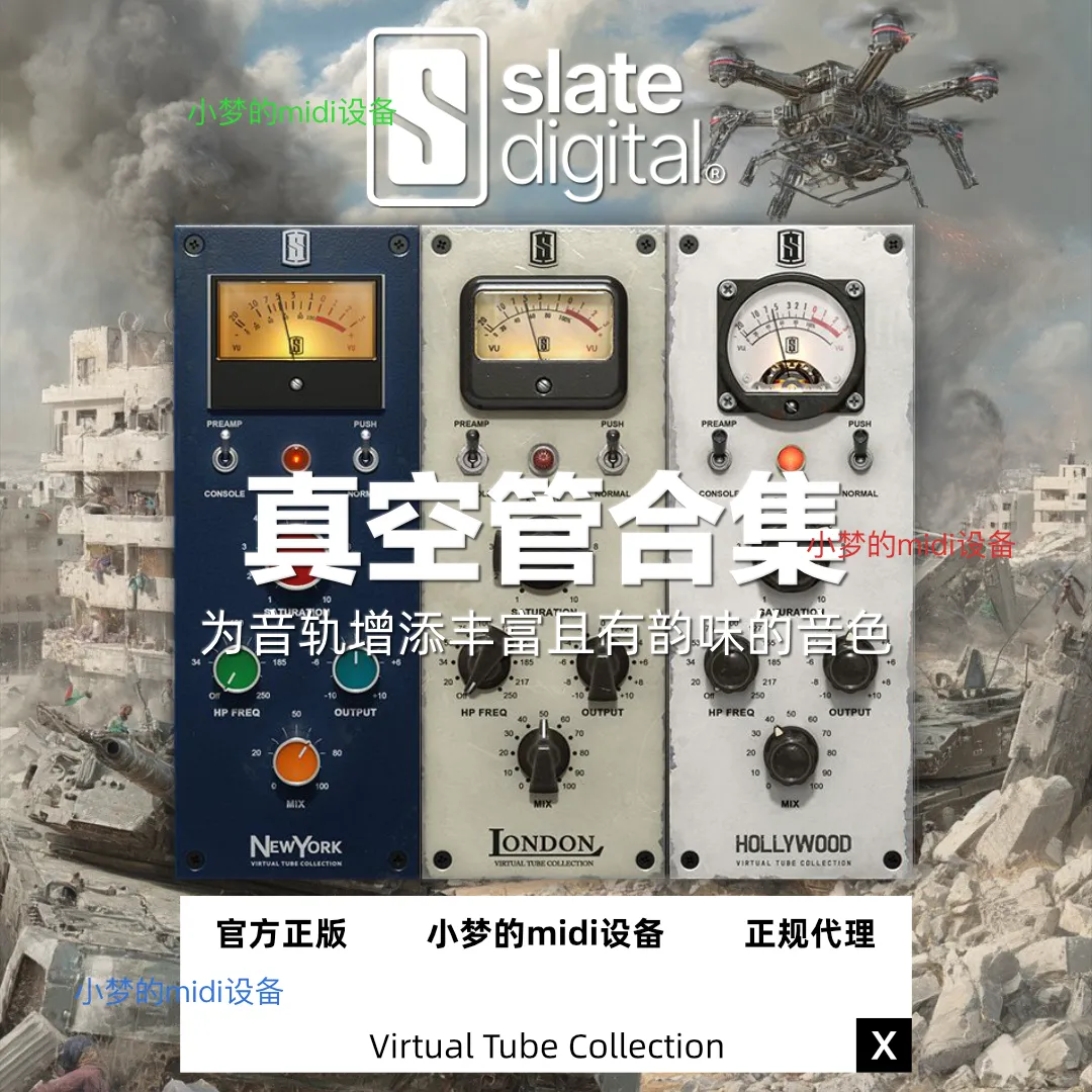 Slate Digital 的VIRTUAL TUBE COLLECTION(虚拟电子管合集)是一套包含三个插件的 Virtual Mix Rack 插件,旨在重现经典复古电子管电路的声音。每个模块都可以作为前置放大器、饱和器,甚至是虚拟电子管总线控制台使用。使用 VTC,您可以为混音和母带处理增添色彩、温暖感、深度和氛围。VMS 用户还可以将 VTC 前置放大器与麦克风模型结合使用,为音轨带来丰富而富有感染力的音色。