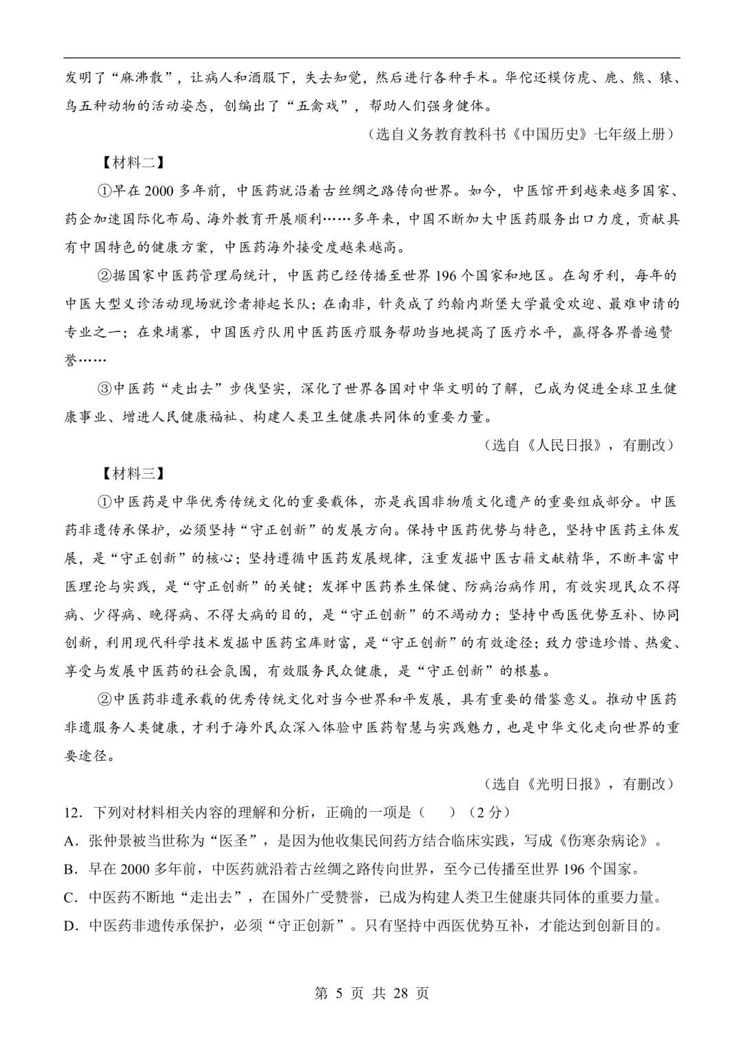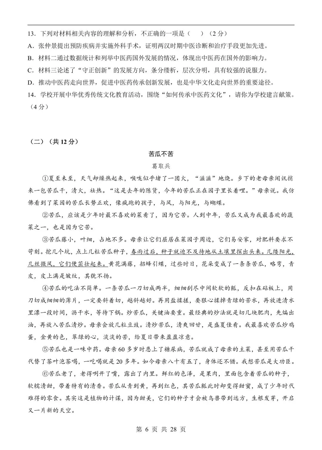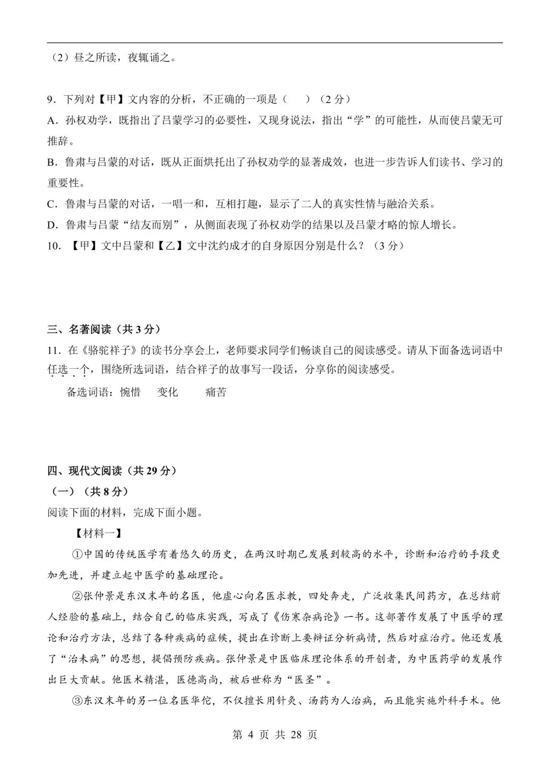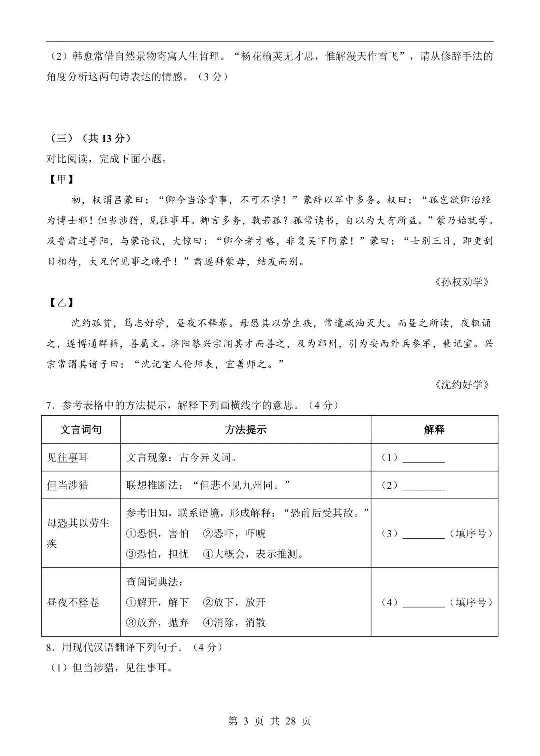 七年级语文下学期第一次月考测试卷含答案可打印