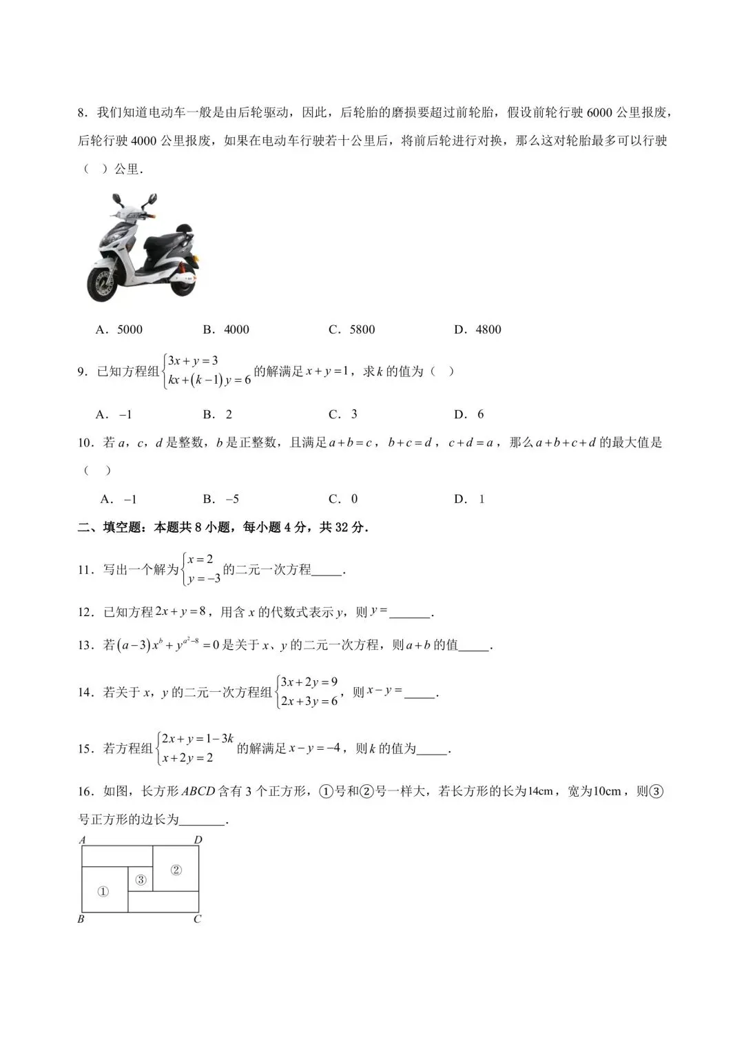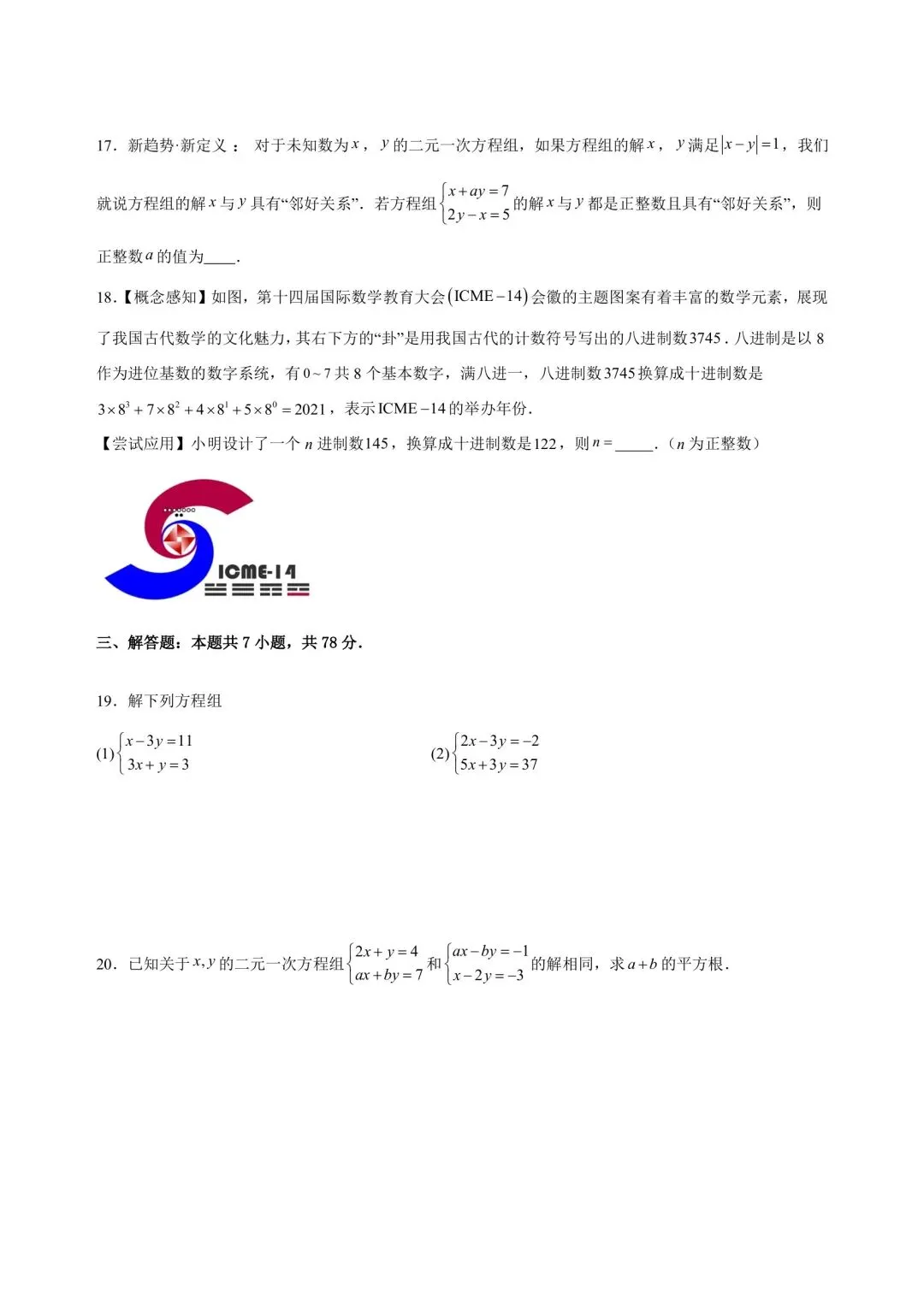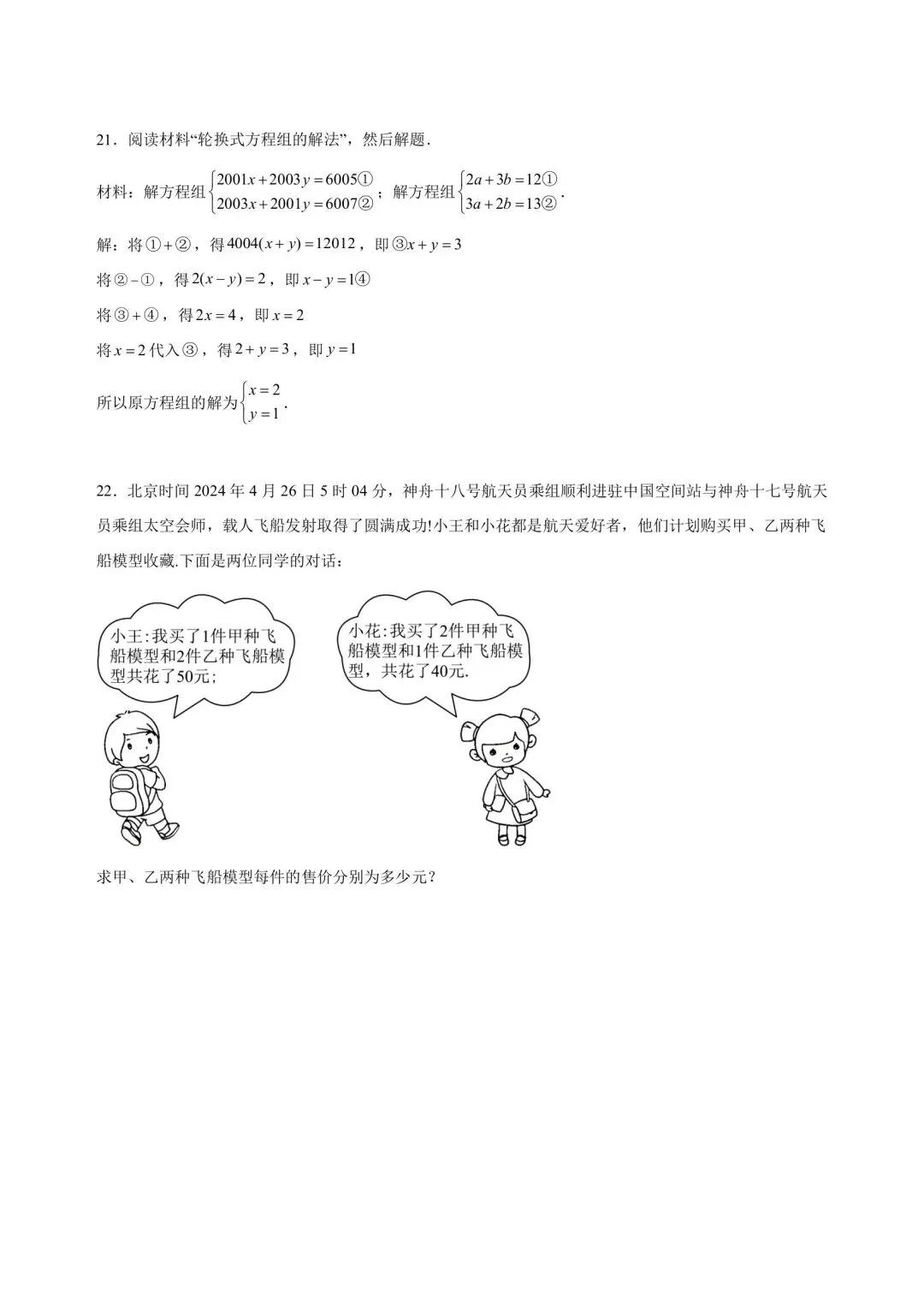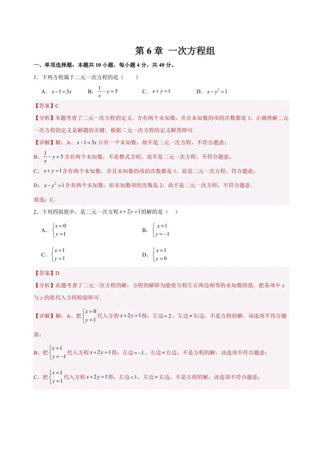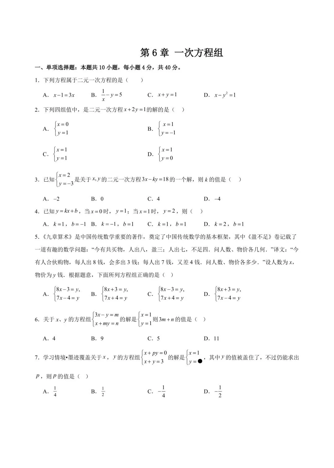 2026年春新版七年级下册华师大版数学第六章【一次方程组】单元测试卷,电子版含答案可打印