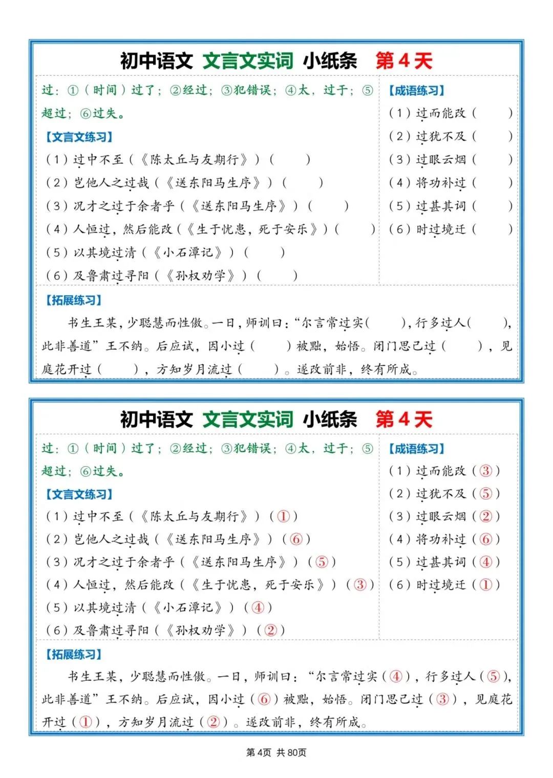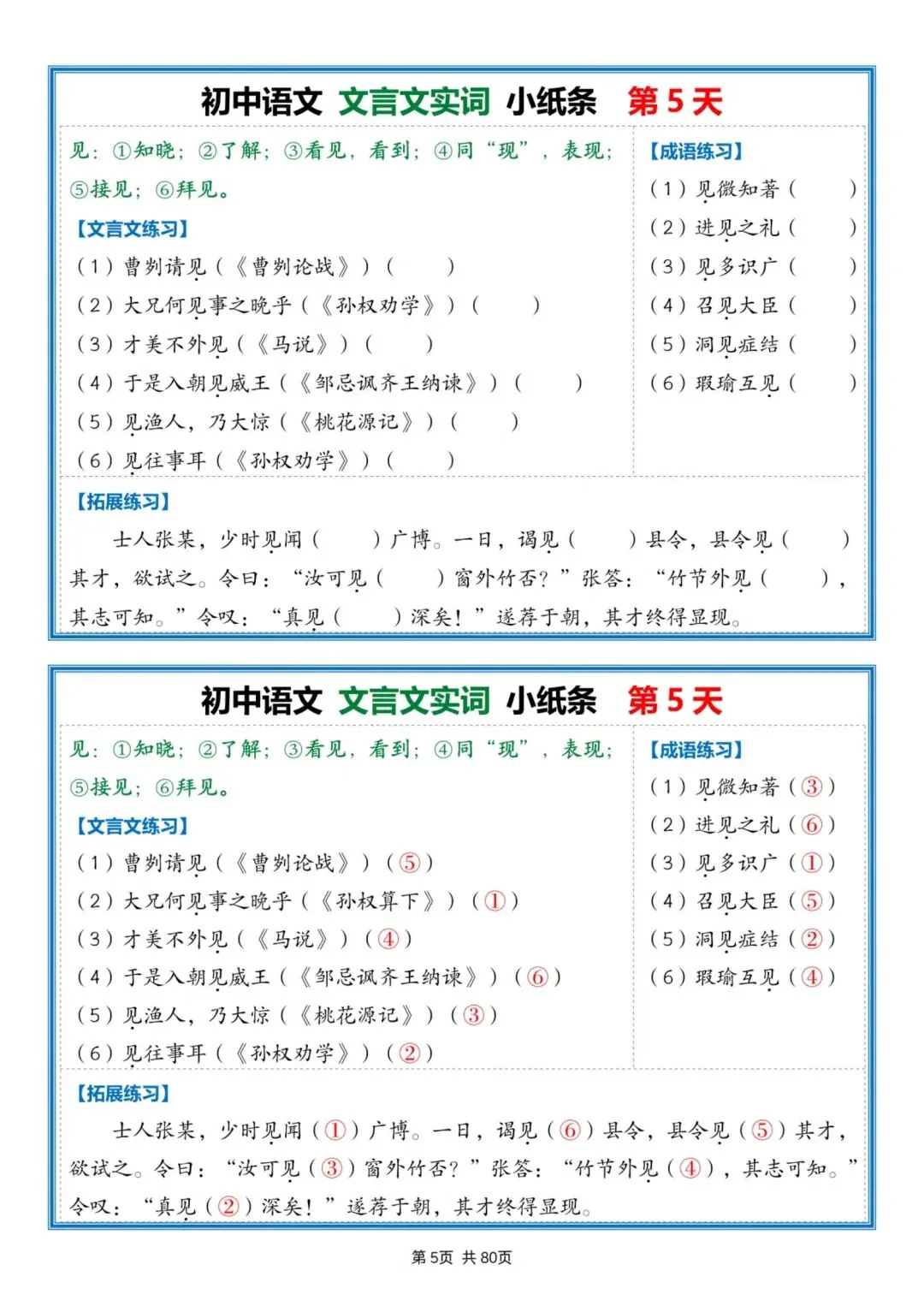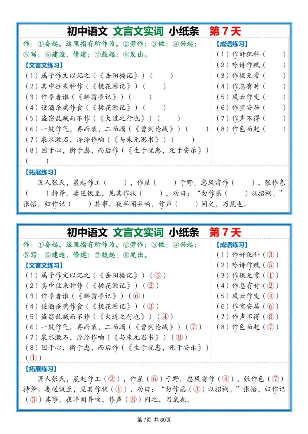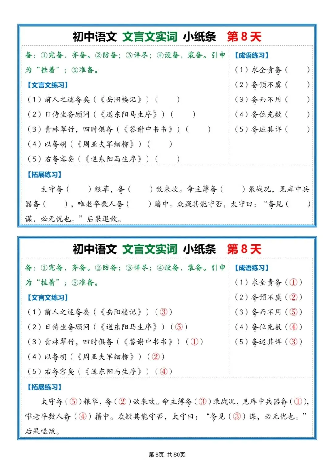 2026春新通用版版八年级下册语文《文言文小纸条》,初二新学期预习资料包,完整电子版可打印!